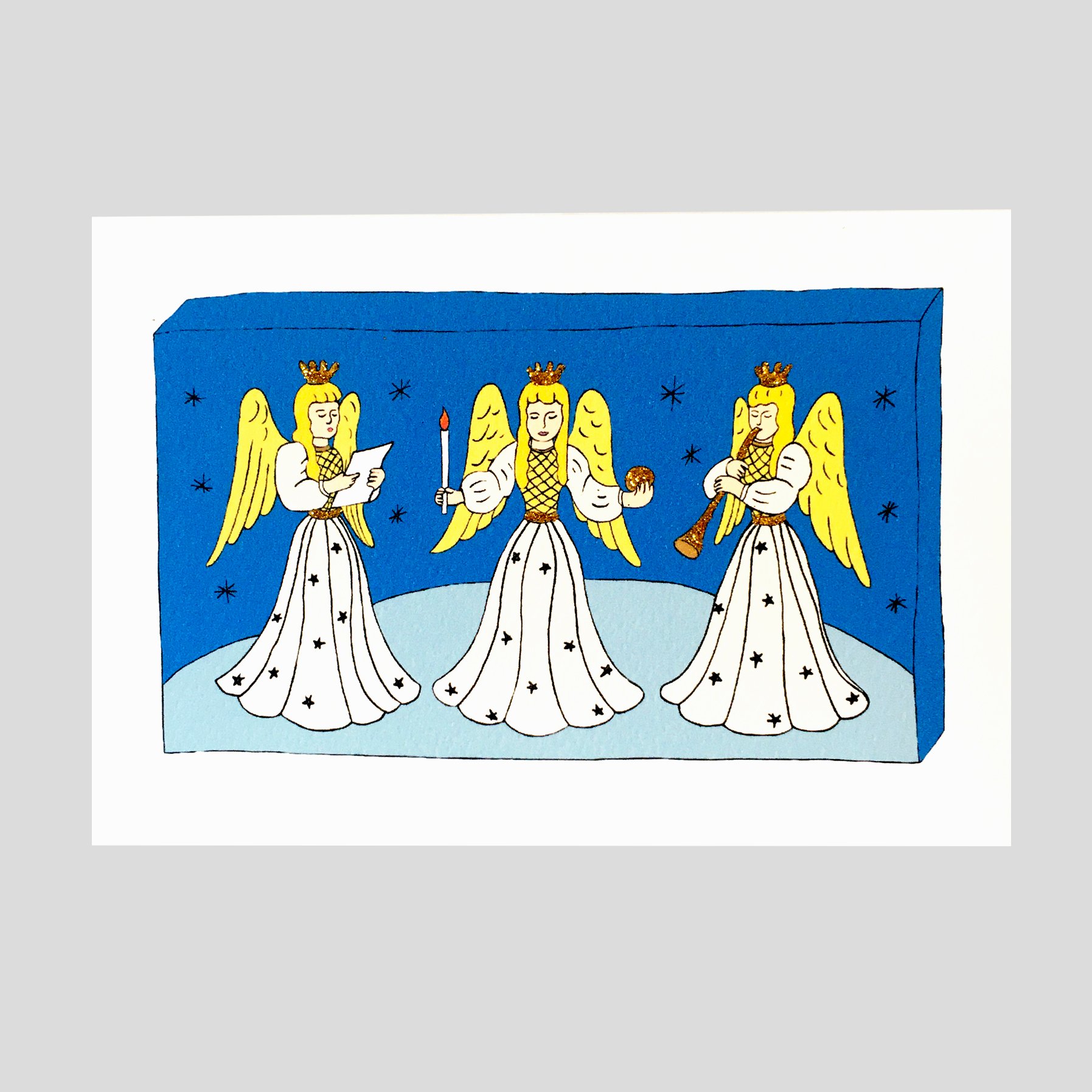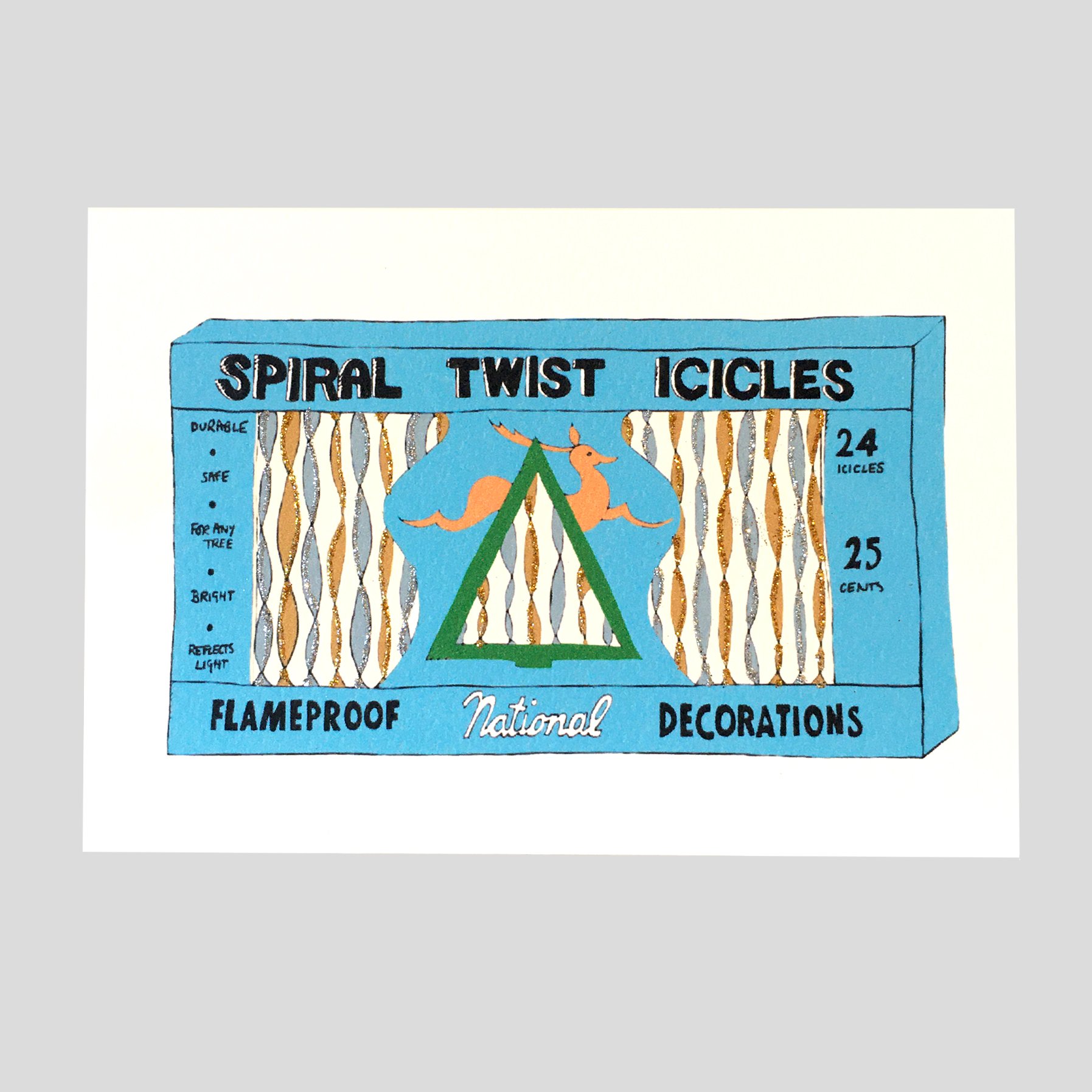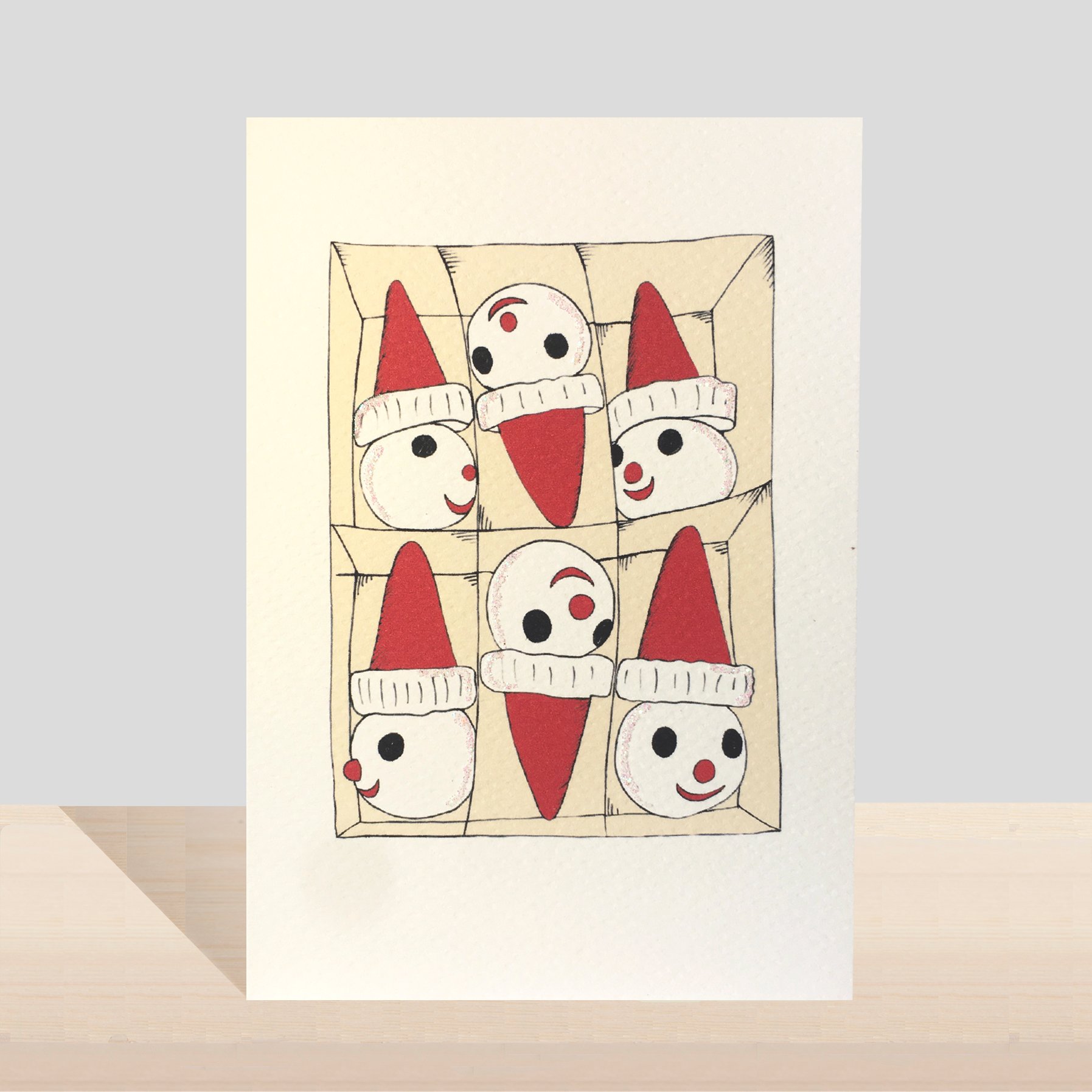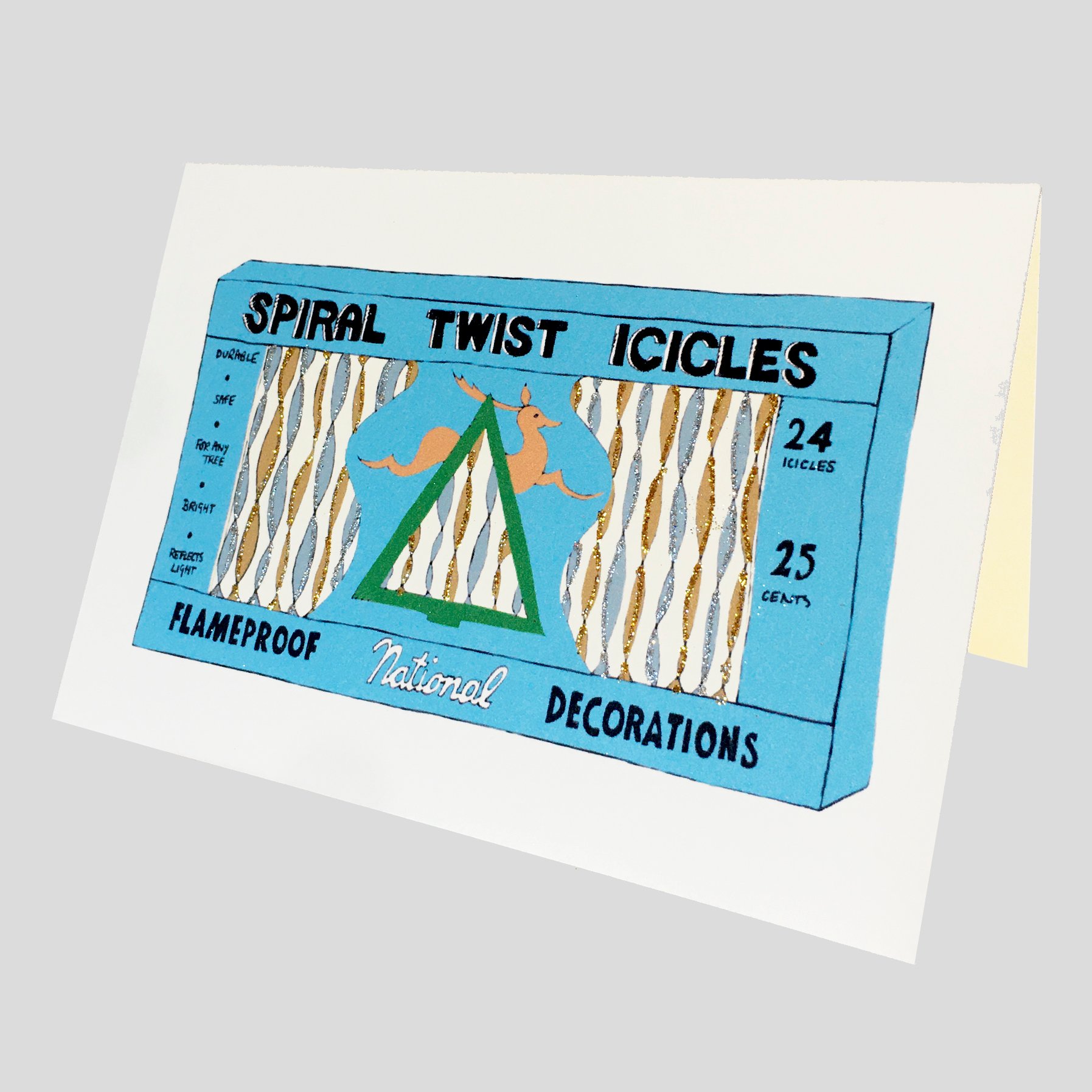 Christmas cards with illustrations of wonderful vintage 1950's Christmas decorations in their packaging. There are 12 different designs to choose between. Printed on high quality textured FSC certified art paper, each card is delicately hand finished with silver eco glitter, packaged with a recycled envelope and sealed with a Rosie Wonders doll-face sticker.