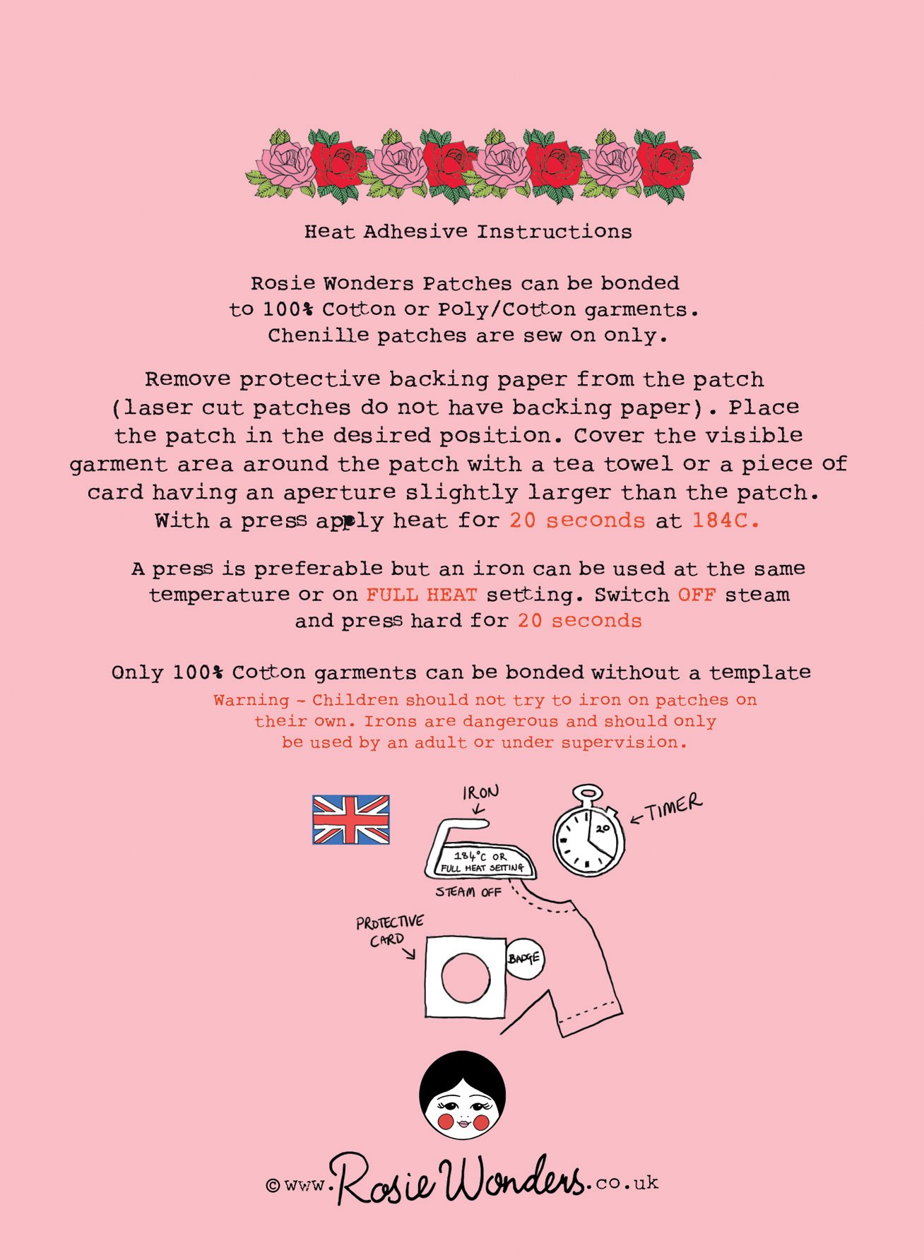Please follow the instructions on the back of the patch when attaching and remember not to use any steam!
