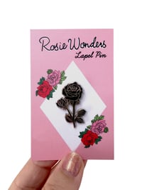 Our most popular pin in black and silver or black and gold mounted on a Rosie Wonders branded backing card.