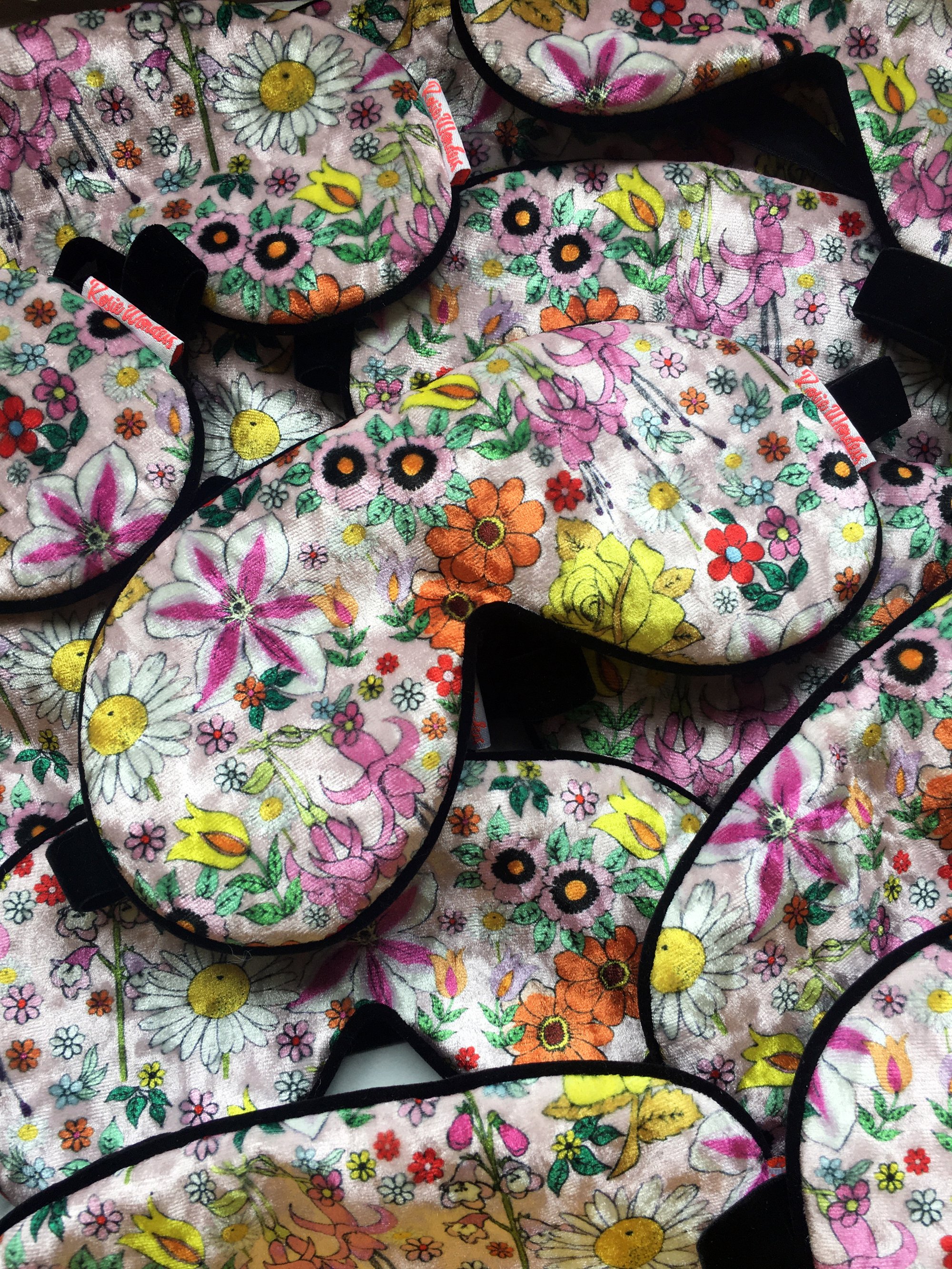 Sleep well with our super luxurious shiny printed velvet eye masks. Sleep masks are backed in soft velvet with matching comfortable soft velvet elastic. Please note, fabric placements vary and items will not be exactly the same as pictured.